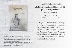 Žinyno pristatymas „Politiniai tremtiniai iš Lietuvos Sibire po 1863 metų sukilimo”